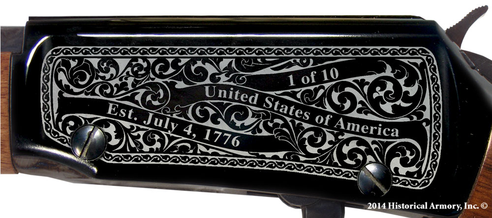 • Detailed engraving on both sides of the American walnut forearm, with the name and establishment date of your county on the right side and your state name and nickname on the left side.