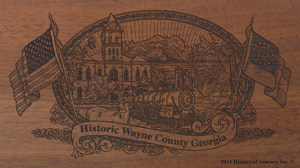 • Detailed engraving on both sides of the American walnut forearm, with the name and establishment date of your county on the right side and your state name and nickname on the left side.