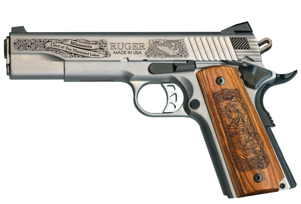 Manufactured by Sturm, Ruger & Co., Inc., this stainless steel .45 auto firearm is classically designed and represents the highest standard of dependability and accuracy. This fully functional 1911 is sure to become a treasured display piece for years to come, while still maintaining its image as one of the highest quality firearms ever made.