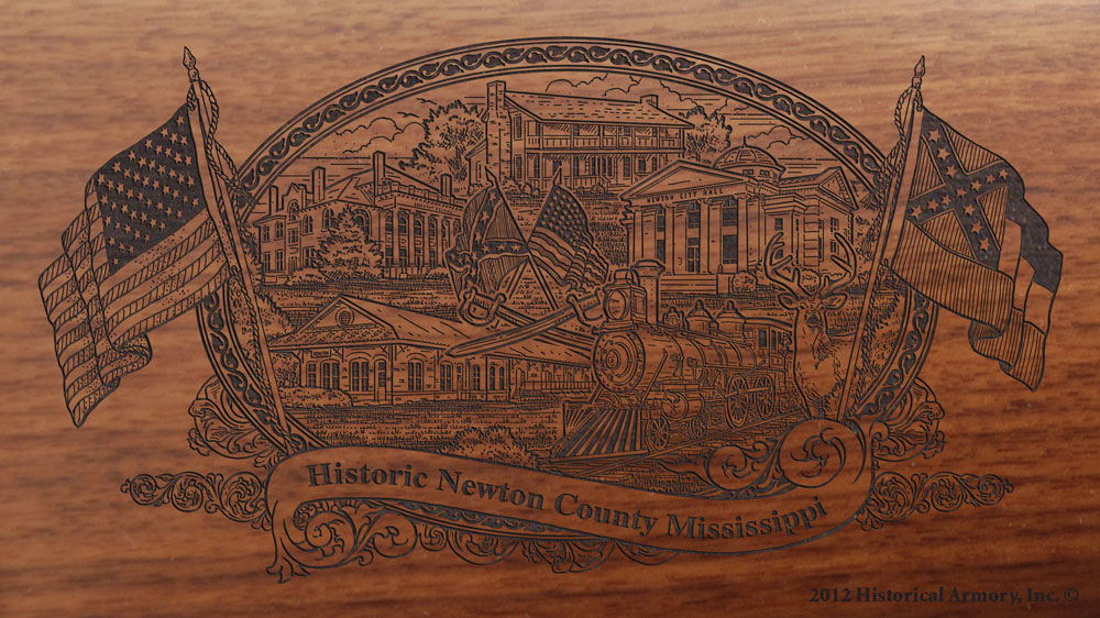 The right side of the hardwood buttstock is engraved with an intricate, original piece of artwork that captures the unique history of your county, while the left side is reserved for custom personalization.