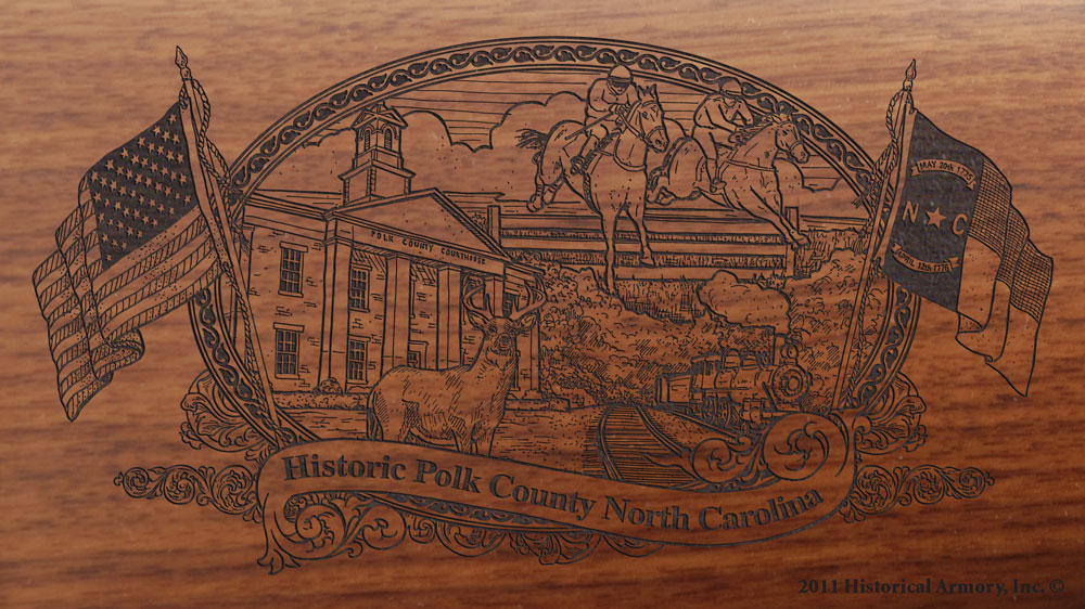 The right side of the American walnut buttstock is engraved with an intricate, original piece of artwork that captures the unique history of your county, while the left side is reserved for custom personalization.