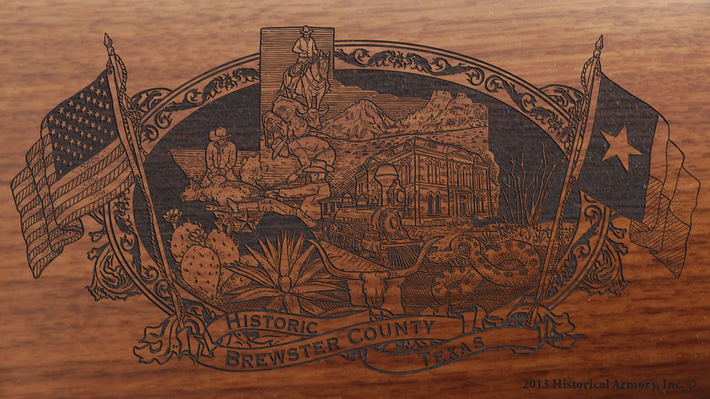 The right side of the hardwood buttstock is engraved with an intricate, original piece of artwork that captures the unique history of your county, while the left side is reserved for custom personalization.