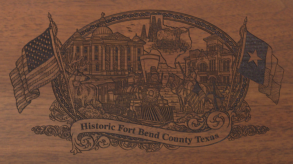 The right side of the American walnut buttstock is engraved with an intricate, original piece of artwork that captures the unique history of your county, while the left side is reserved for custom personalization.