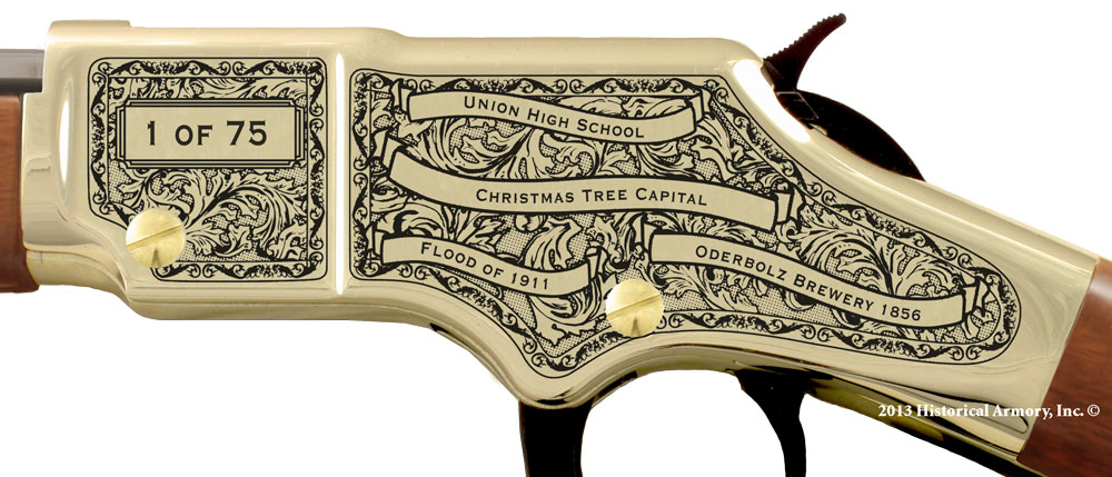 In honor of your county's rich historical legacy, Historical Armory is proud to present the Limited Historical Edition Rifle! Produced on the affordable, American-made Henry .22 LR rifle (Model #H001 & H004), the Limited Historical Edition rifle combines meticulous research, original artwork, and finely detailed engraving to celebrate the history of ACT NOW, because there will be only model H001 and 75 Model H004 Golden Boy Henry rifles ever produced by Historical Armory! Purchase either model separately or both rifles for a complete limited edition set.