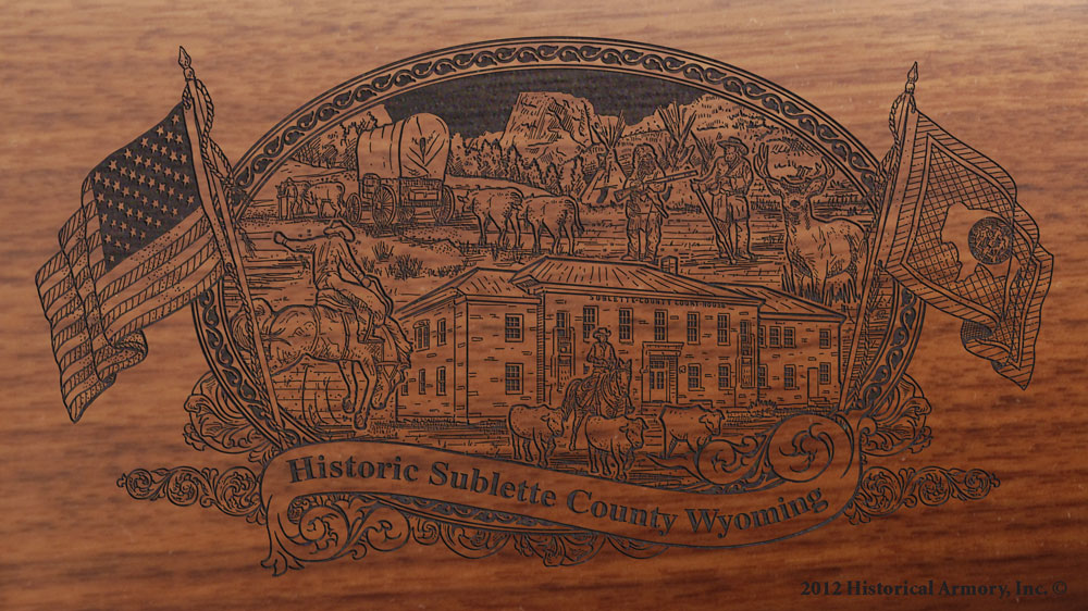 • The right side of the hardwood buttstock is engraved with an intricate, original piece of artwork that captures the unique history of your county, while the left side is reserved for custom personalization.