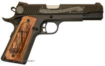 Detailed engraving on both sides of the American walnut forearm, with the 10th anniversary dates on the right side and "(Your State) Remembers" on the left side.