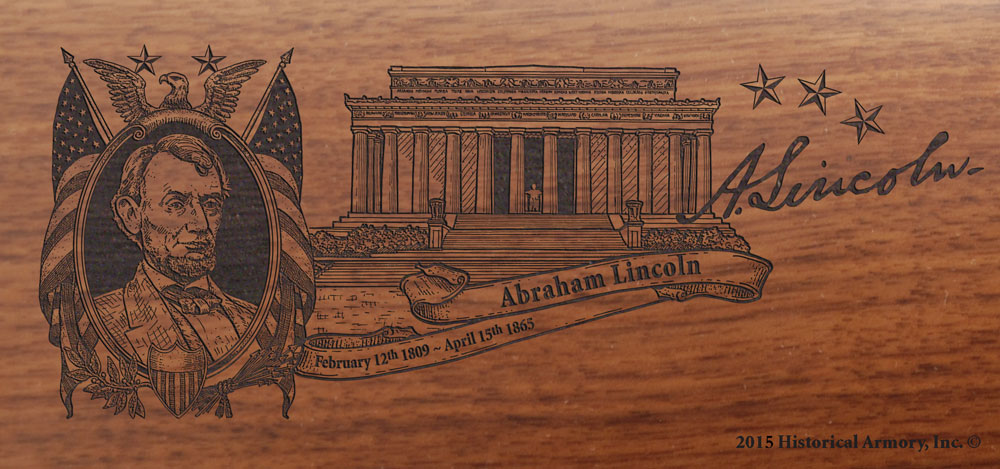 • The right side of the American walnut buttstock is engraved with an intricate, original piece of artwork celebrating the life of Abraham Lincoln, while the left side of the buttstock is reserved for custom personalization.