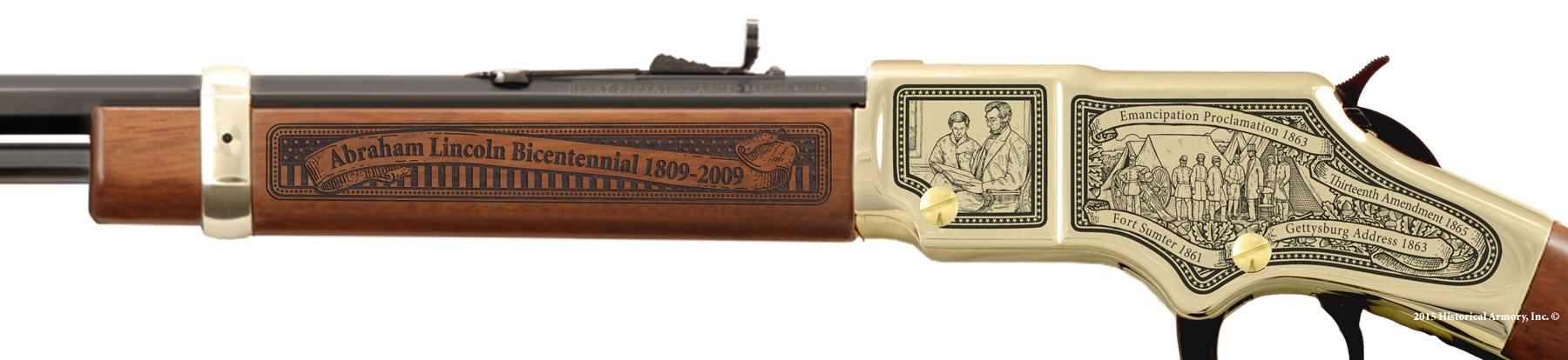 From his birth in 1809 in the backwoods of Kentucky to the Illinois House of Representatives, from the Black Hawk War to the Gettysburg Address, the Abraham Lincoln Bicentennial Rifle beautifully illustrates the incredible life and enduring legacy of Abraham Lincoln, America’s 16th President.