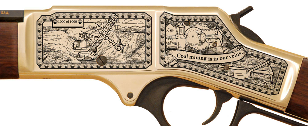 The American Coal Miner Limited Edition Rifle is available on the affordable, American-made Henry .30/30 (H009B), "Golden Boy" .22LR (H004), and the Ruger 10/22 models. ACT NOW, because there will be only 1000 American Coal Miner Limited Edition Golden Boys and .30/30s ever produced by Historical Armory! Each fully functional rifle includes space on the buttstock for custom personalization, providing a unique opportunity to create your own treasured family heirloom that will be passed down for generations. Purchase the 10/22, H004, or H009B separately, or all the rifles together for a complete limited edition set.