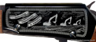 The right side of the American walnut buttstock is engraved with an intricate, original piece of artwork that depicts the legacy of the American Railroad, while the left side is open for custom personalization (available for an additional fee).