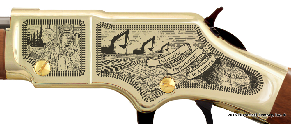 The American Railroad Limited Edition Rifle is available on the following affordable, American-made Henry models: .22LR (H001), "Golden Boy" (H004), "Big Boy" (H006), and the .30/30 (H009B). ACT NOW, because there will be only 1000 American Railroad Limited Editions ever produced by Historical Armory! Each fully functional rifle includes space on the left side of the buttstock for custom personalization, providing a unique opportunity to create your own treasured family heirloom that will be passed down for generations. Purchase the H001, H004, H006, or H009B separately, or all the rifles together for a complete limited edition set.