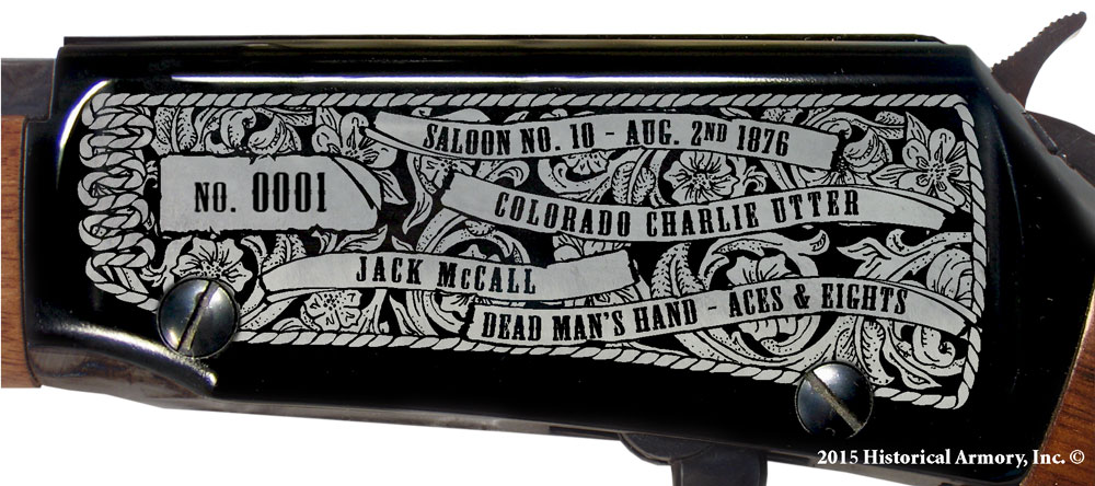The right side of the American walnut buttstock is engraved with an intricate, original piece of artwork featuring images honoring the life of Wild Bill Hickok, while reserving the left side of the buttstock for custom personalization.