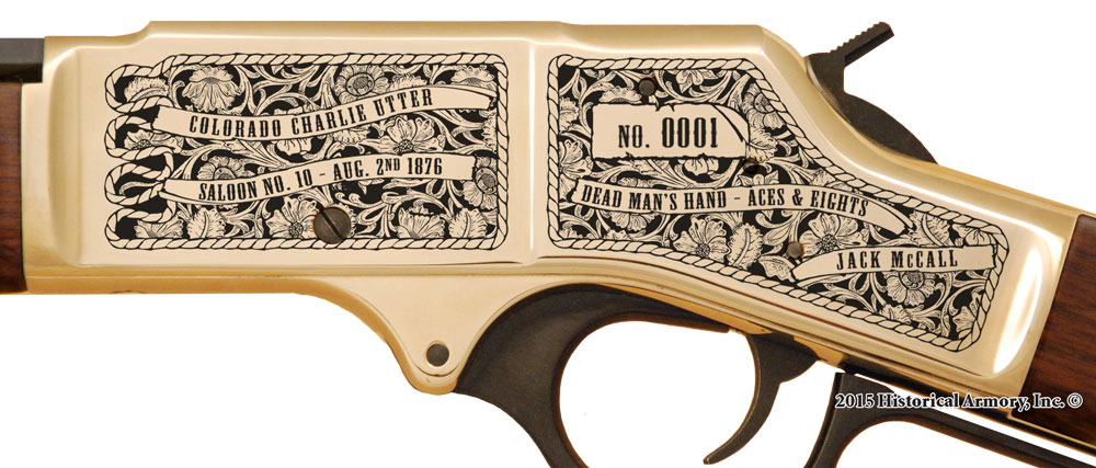 Historical Armory is proud to present the Wild Bill Hickok Limited Edition Rifle. Available on the fully functional, American-made Henry H001L .22LR, the “Golden Boy” H004 .22LR, the "Big Boy" H006 (not pictured) and the Henry H009B .30/.30. The Wild Bill Hickok Limited Edition Rifle commemorates the impossibly colorful life of one of the West’s most famous personalities. From his days as a Union Army Scout and United States Deputy Marshal to his tragic murder while holding the infamous “Dead Man’s Hand” during a poker game in Deadwood in 1876, the Wild Bill Hickok Limited Edition Rifle is meticulously researched, beautifully illustrated, and superbly captures the essence of the West’s first true gunfighter!