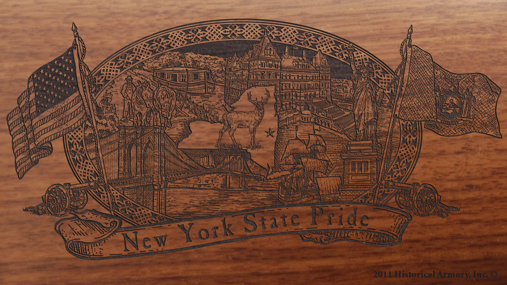 • The right side of the American walnut buttstock is engraved with an intricate, original piece of artwork that captures the unique history of your state, while the left side is reserved for custom personalization.